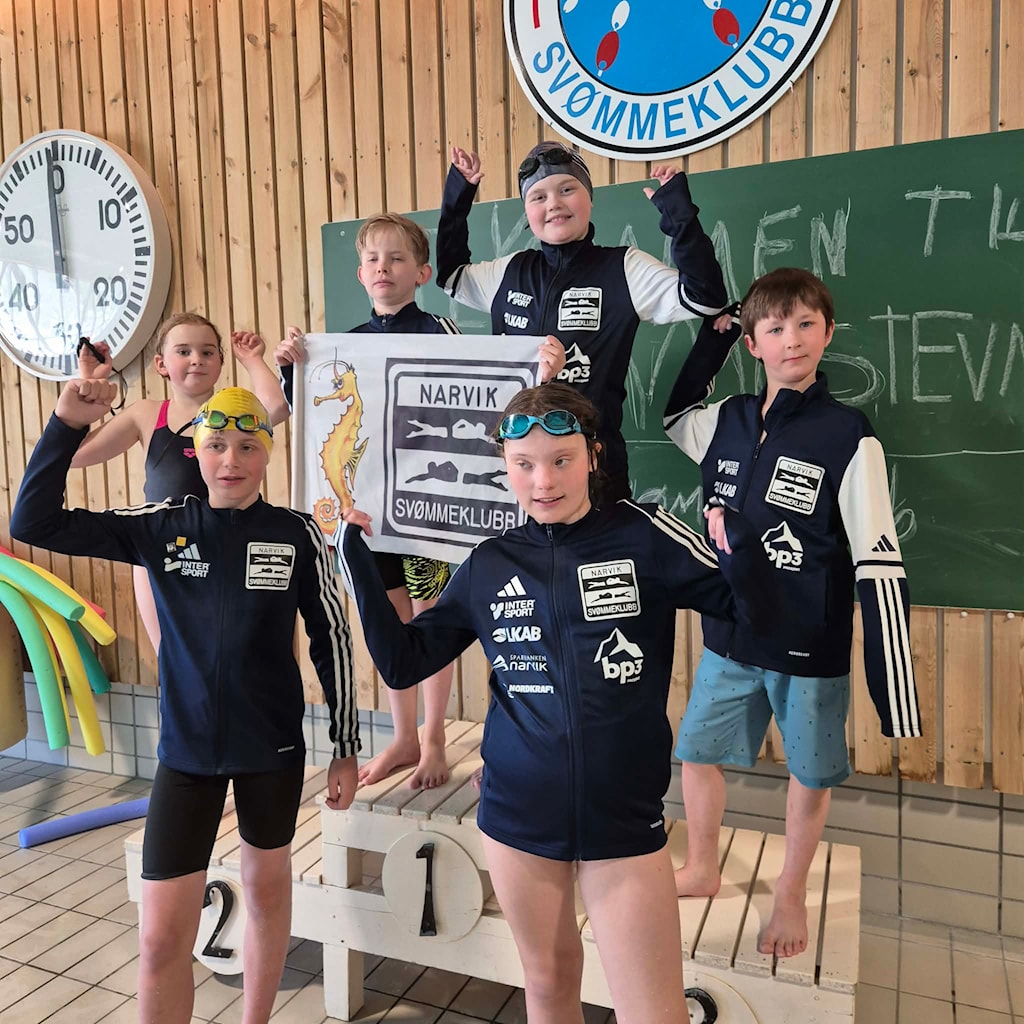 Lørdag var Narvik Svømmeklubb i Kvæfjord på rekruttstevne hos Kvæfjord Svømmeklubb. Det ble mange medaljer til Narviksvømmerne og fine personlige rekorder. Det er flott å se at barna har god fremgang. Det er en fin gjeng å reise på svømmestevne med. Takk også til de voksne som har stilt opp som støtteapparat og heiet på de unge svømmerne og bidro til en flott dag. Vi retter også en stor takk til alle sponsorene våre. Denne gangen takker vi Intersport Narvik som ordner drakter til oss. De holder til i første etasje på Thon Malmporten. Husk at som medlem i Narvik Svømmeklubb får du 10% rabatt på alle varer i butikken.